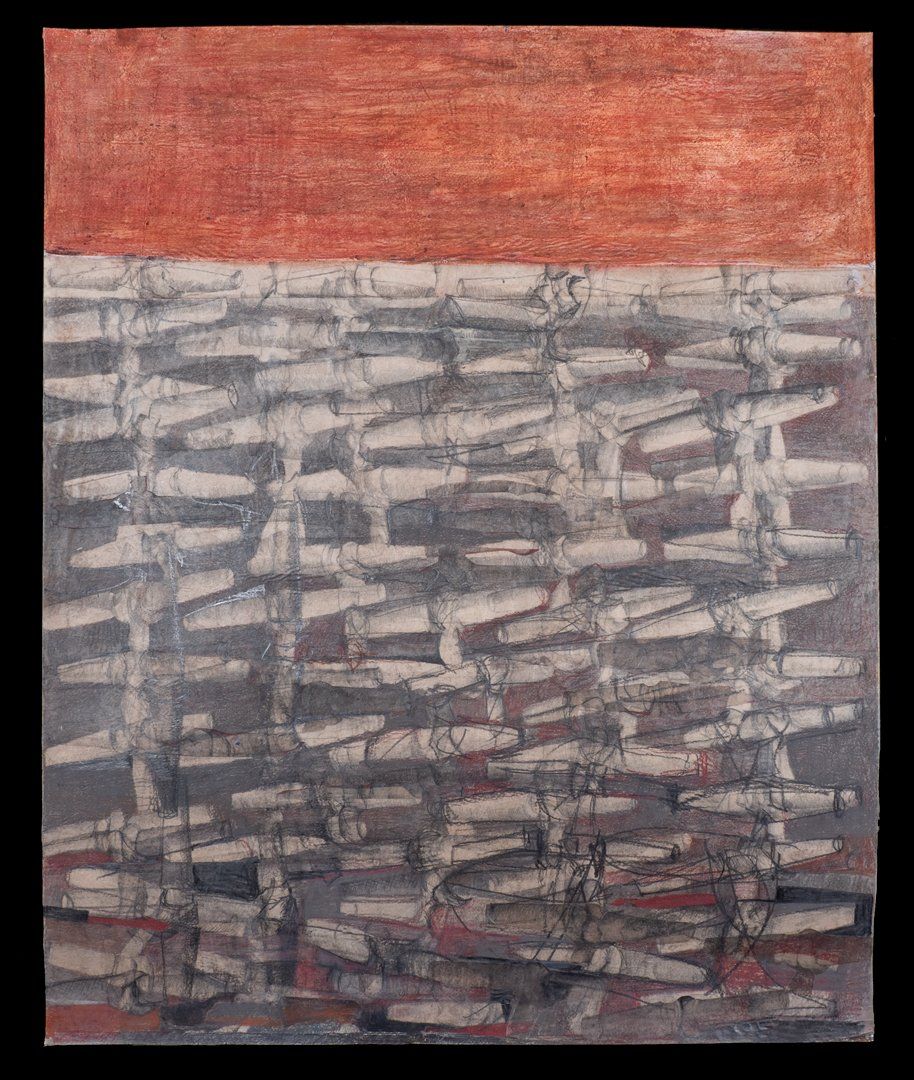 30"x36" Prismatic color pencils, rice paper, paper, waxed linen thread 2021